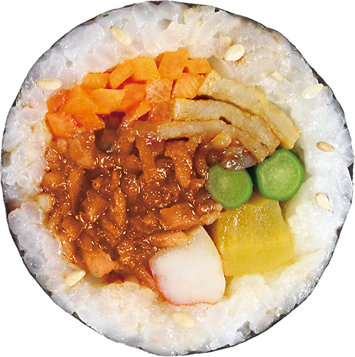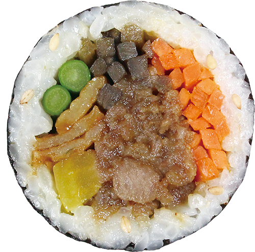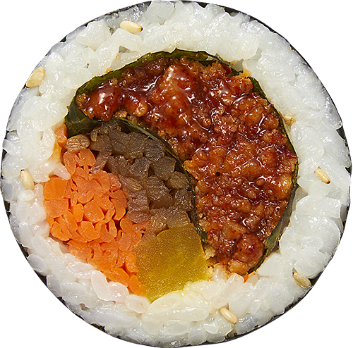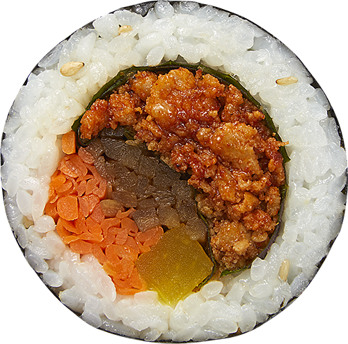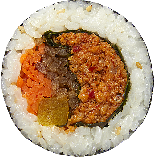 Stir-fried Spicy Pork Kimbap full of fire scent with 17 kinds of Golden Ratio secret seasoning and the juicy meat.
